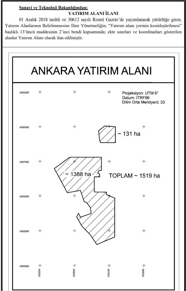 “Samsun-Mersin hattında; Aksaray, Amasya, Ankara, Eskişehir, Hatay, Karaman, Kastamonu, Kayseri, Kırşehir, Konya, Nevşehir, Niğde ve Yozgat’ta toplam 59 bin hektar büyüklüğünde 16 yeni yatırım alanı oluşturduk. Bugün Resmî Gazete’de ilan ettik. Bu tarihi adımla mevcut planlı sanayi alan büyüklüğümüzün yüzde 37’si kadar ilave alanı ülkemiz sanayiine bugünkü Resmî Gazete’de yayımlanan ilanla kazandırmış olduk. Hayırlı uğurlu olsun. OSB’lerimizin ortalama 11 katı büyüklüğe ulaşacak bu alanlarda mega endüstriyel bölgeler inşa edeceğiz.”